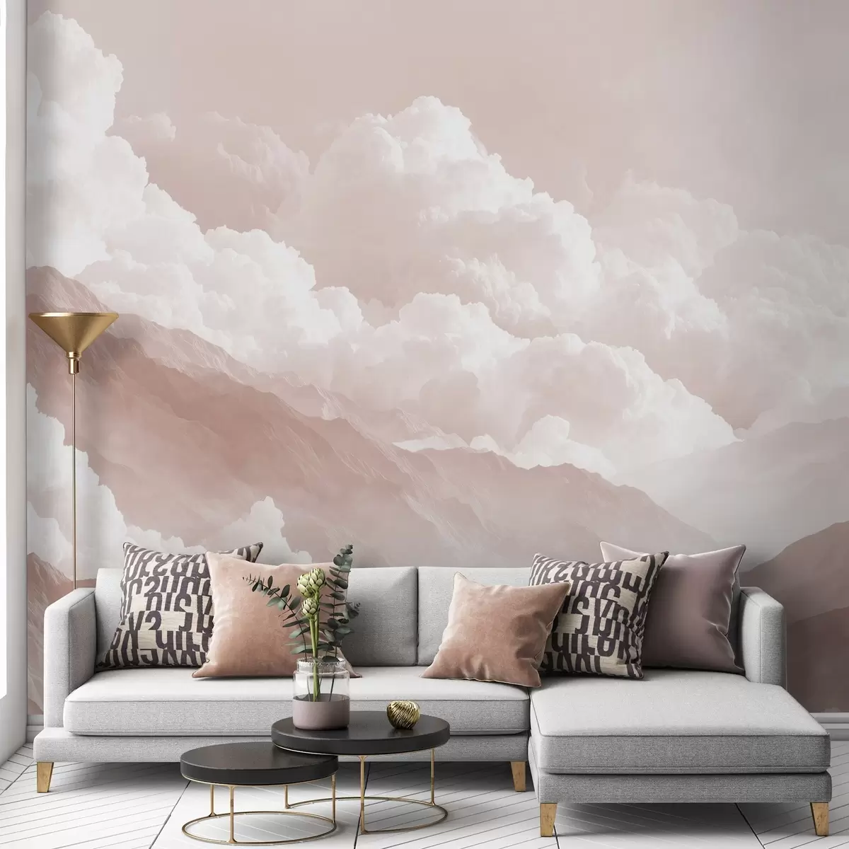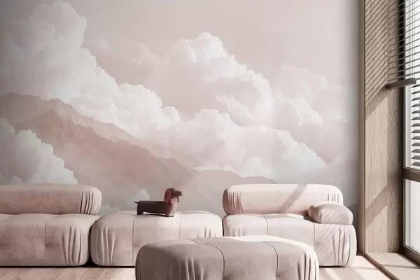 Фотошпалери М'який гірський пейзаж у світлих пудрових тонах w09226v1