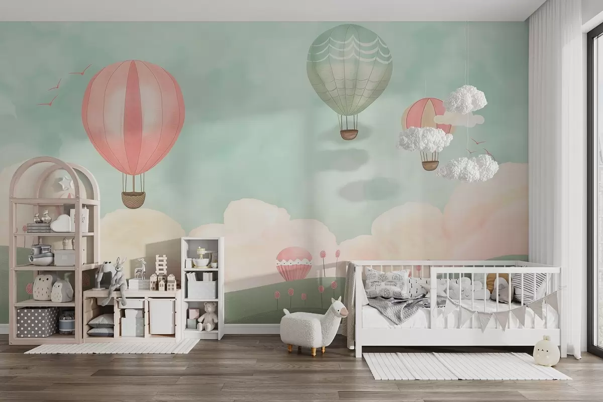 Фотошпалери Повітряні кулі над пагорбами з хмарами w09228
