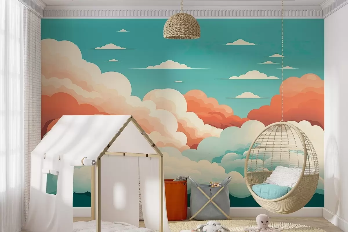 Фотошпалери Химерні хмари в мультяшному стилі на тлі блакитного неба w09246