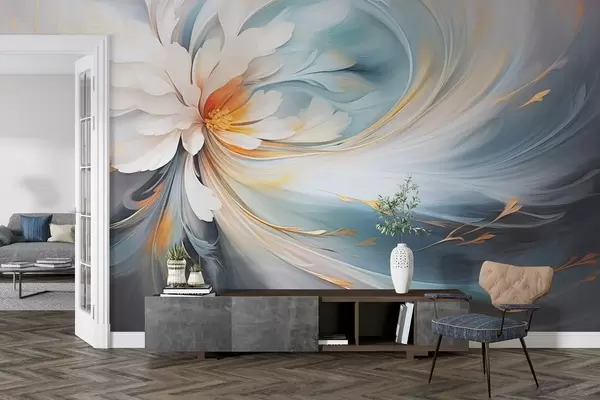 Фотошпалери Абстрактна квітка в ніжних блакитних і помаранчевих тонах w09270