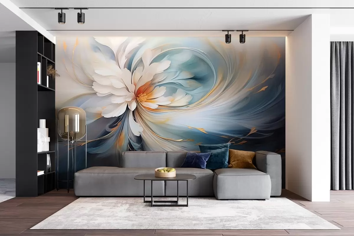 Фотошпалери Абстрактна квітка в синьо-помаранчевих тонах w09270v1