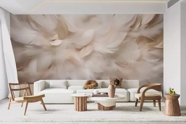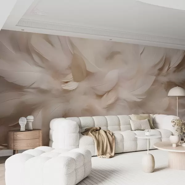 Фотошпалери Пухнасте пір'я та пух у кремових відтінках w09274