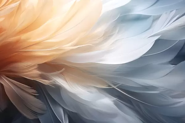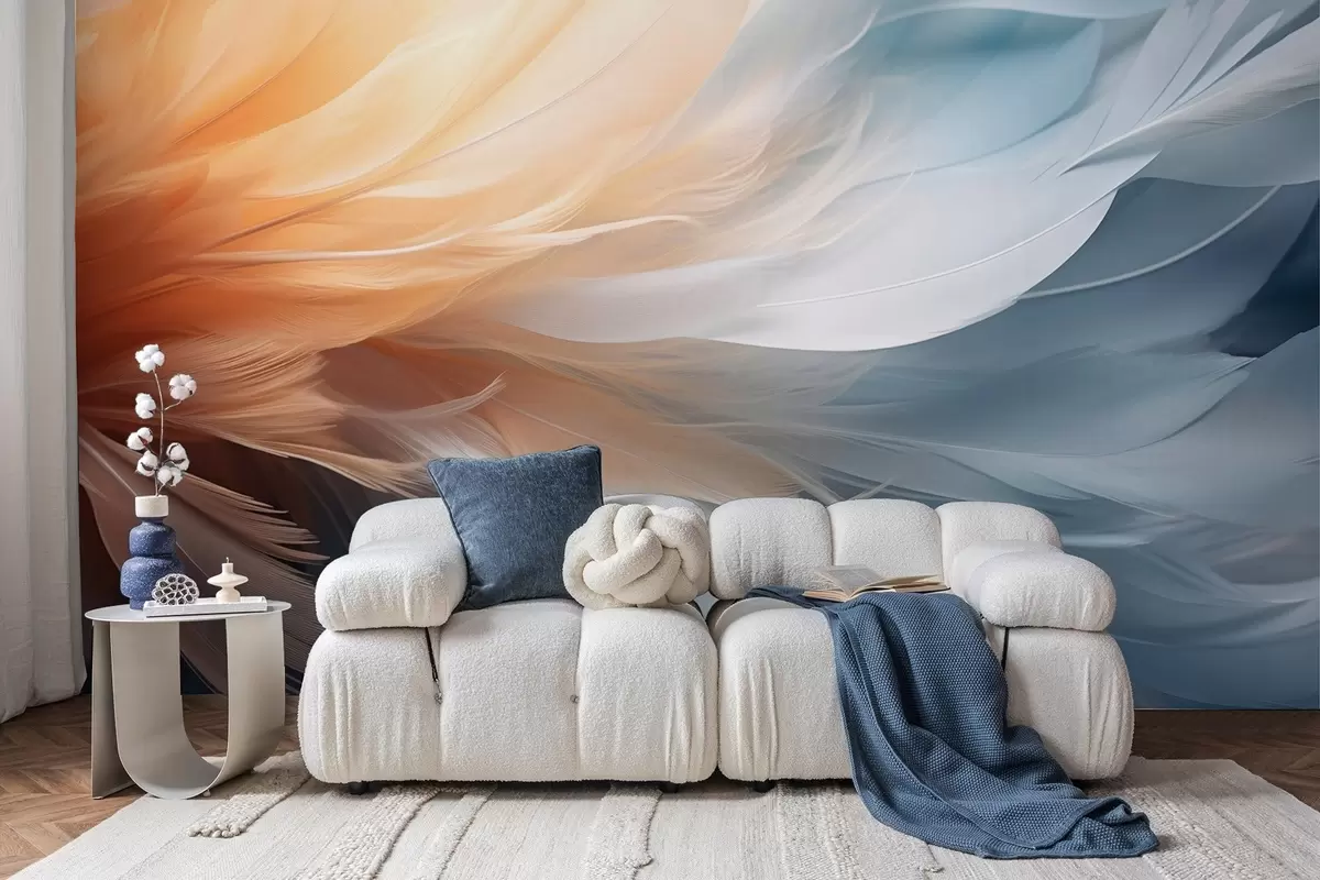 Фотошпалери Ніжне пір'я в помаранчевих і синіх градієнтних тонах w09282