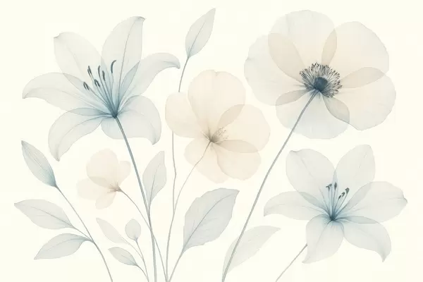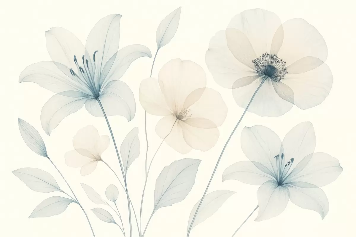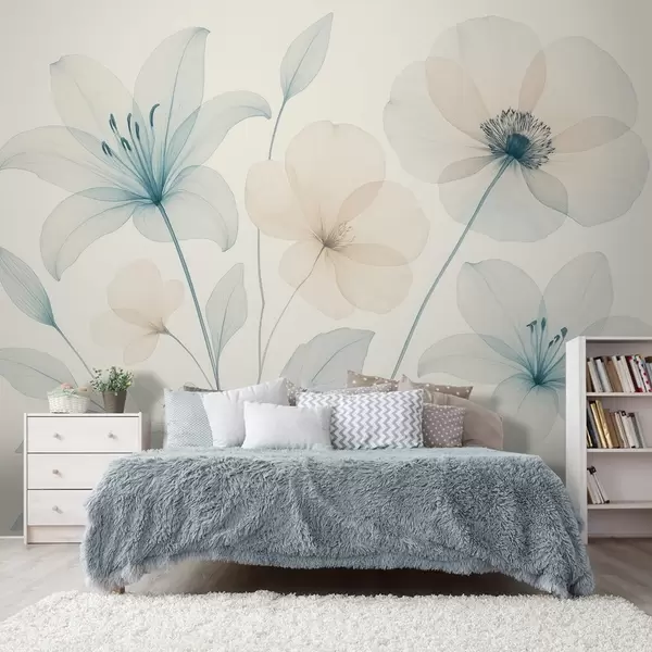 Фотошпалери Ніжні квіти в пастельно-блакитному та кремовому акварельному стилі w09287