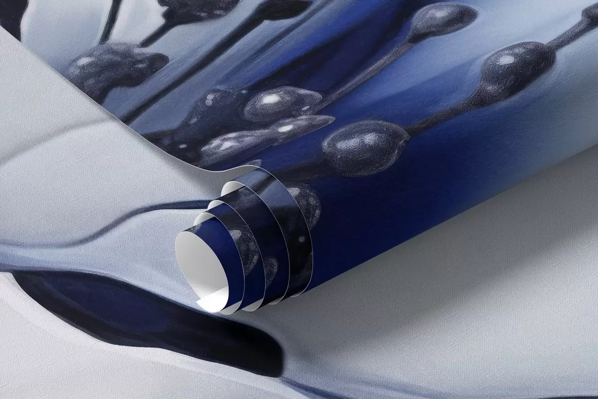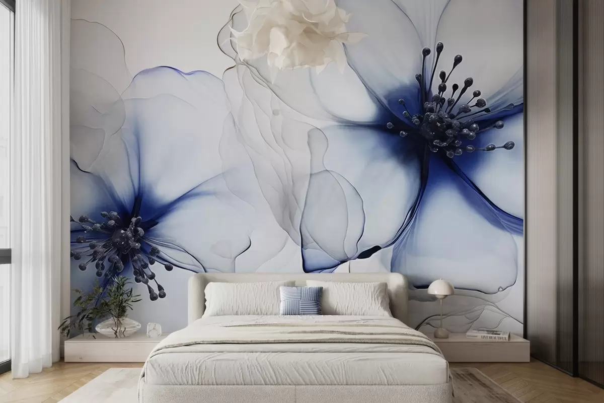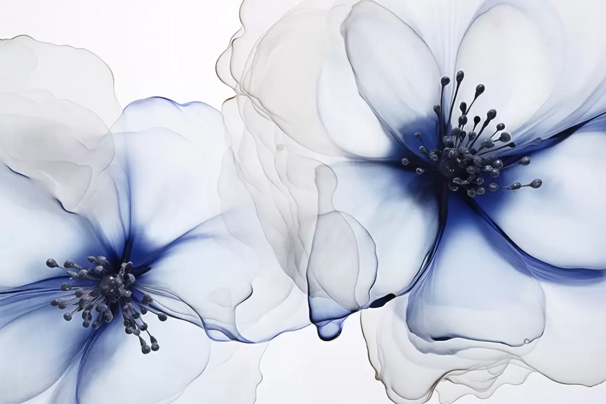 Фотошпалери Дві напівпрозорі фактурні сині квітки з видимими тичинками, ніжними пелюстками, що накладаються одна на одну, і м'якою плавною текстурою w09295v1