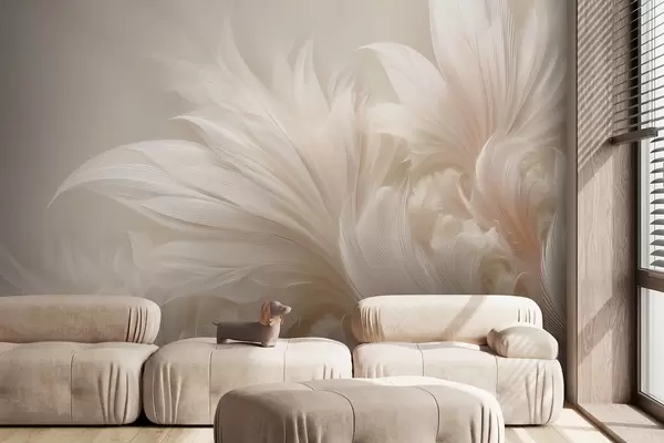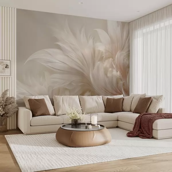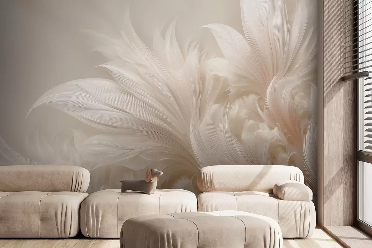 Фотошпалери Невагоме пір'я у відтінках ванільного крему w09302