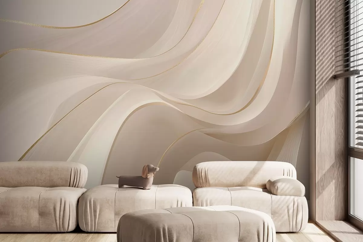 Фотошпалери Плавні хвилі з жовтими акцентами в кремовому світлі w09303
