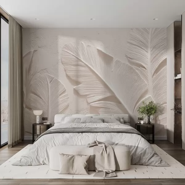 Фотошпалери Рельєфне листя в теплих бежево-пісочних тонах w09307v1