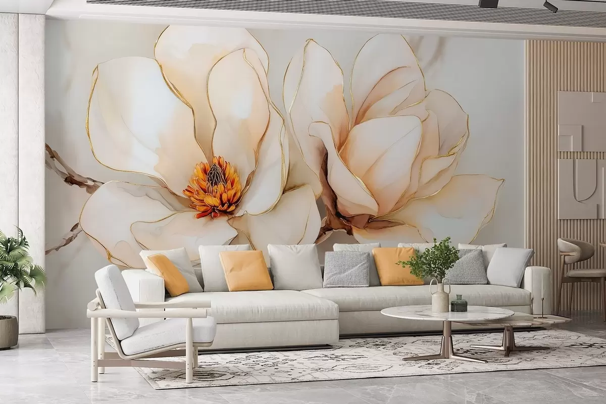 Фотошпалери Великі світлі квіти магнолії з м'якими пелюстками w09308