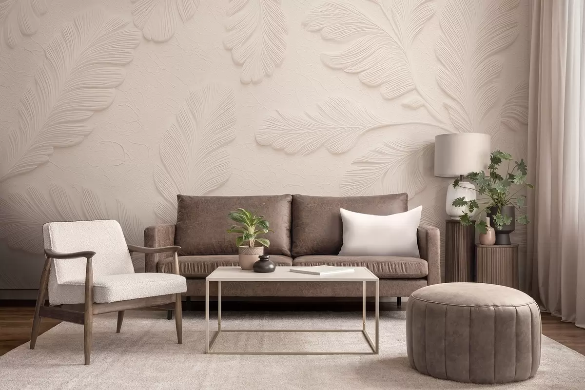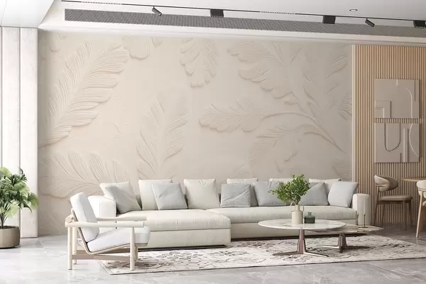 Фотошпалери Рельєфне листя на світлому тлі з ефектом тріщин w09309