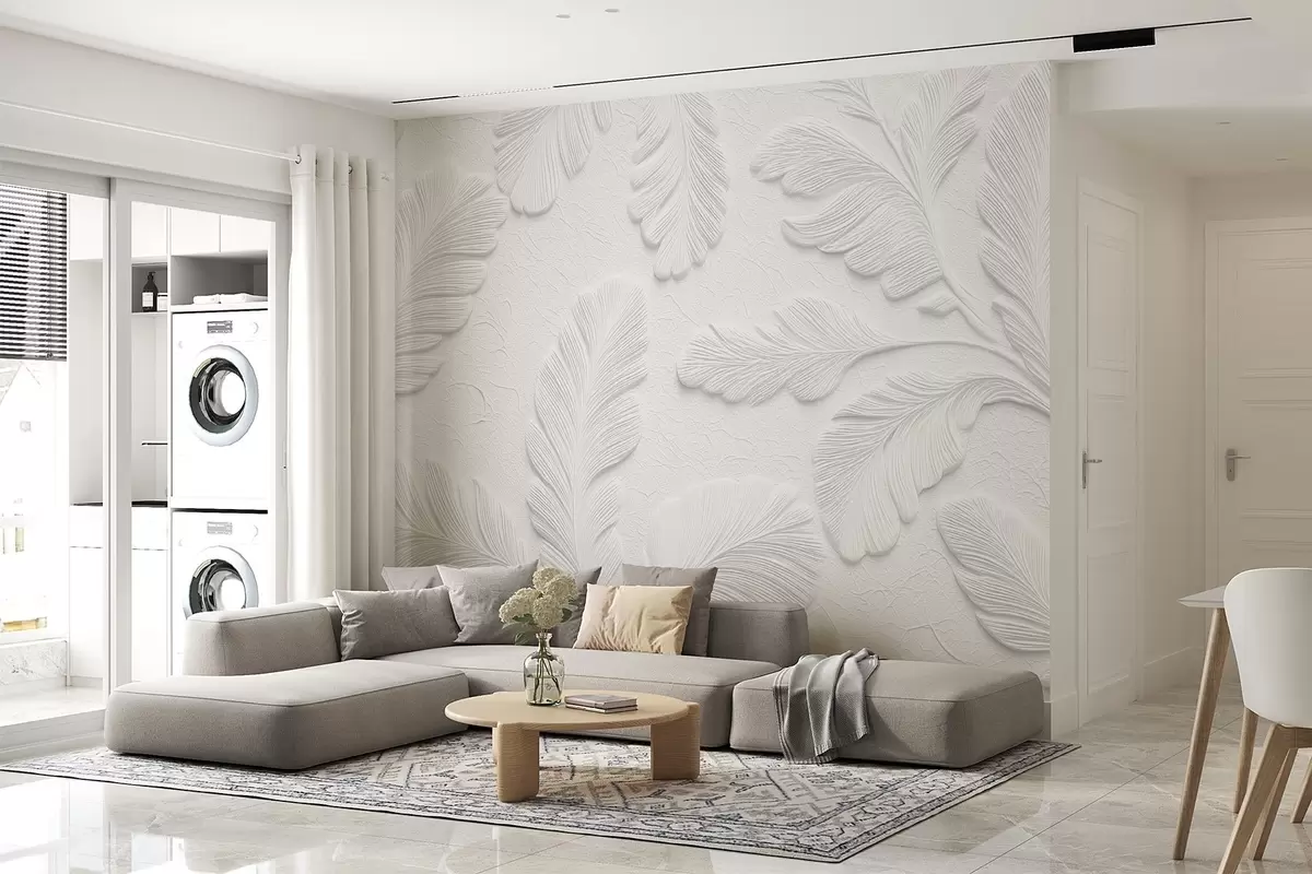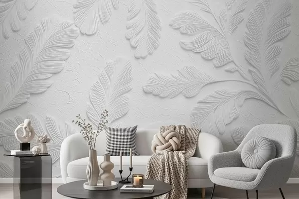 Фотошпалери Рельєфне листя сірого кольору з ефектом потрісканої текстури w09309v1