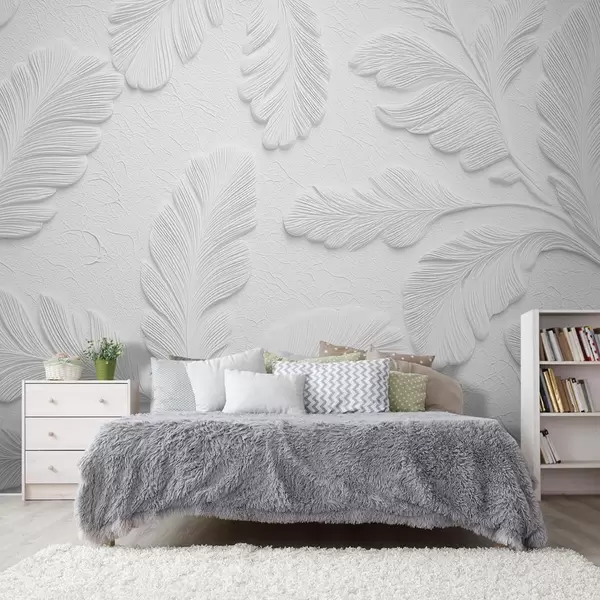 Фотошпалери Рельєфне листя сірого кольору з ефектом потрісканої текстури w09309v1