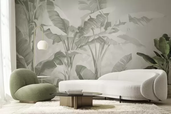 Фотошпалери Тропічні бананові листя в ніжних зелених відтінках w09311v1
