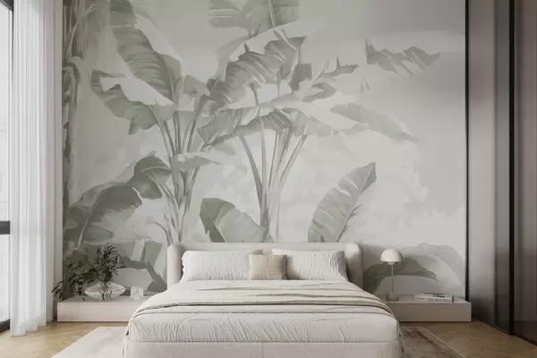 Фотошпалери Тропічні бананові листя в ніжних зелених відтінках w09311v1