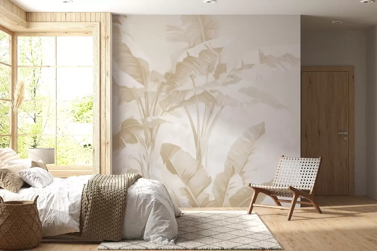 Фотошпалери Тропічні бананові листя в м'яких бежевих тонах w09311v2