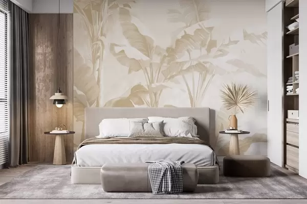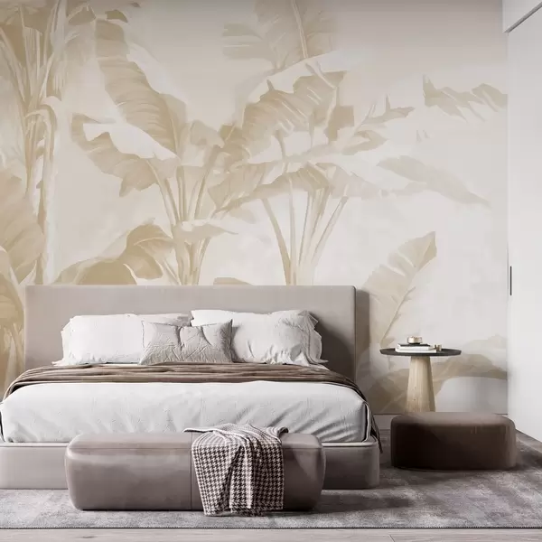 Фотошпалери Тропічні бананові листя в м'яких бежевих тонах w09311v2
