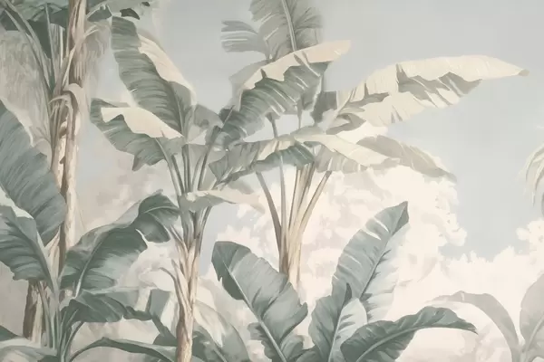 Фотошпалери Тропічні бананові листя в м'яких бежевих тонах w09311v2