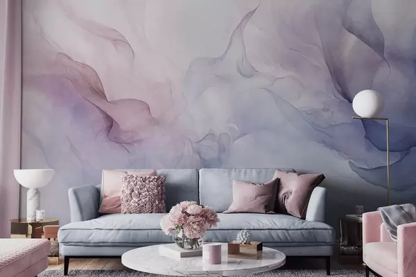 Фотошпалери Абстрактний фактурний живопис з плавними пастельними відтінками рожевого, фіолетового та блакитного, що створюють м'який ефект w09318