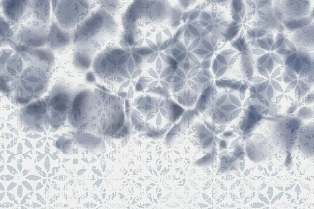 Фотошпалери Абстрактне фактурне мистецтво з блакитним квітковим принтом, вицвілим і розмитим ефектом, що створює м'яку і мрійливу атмосферу w09322