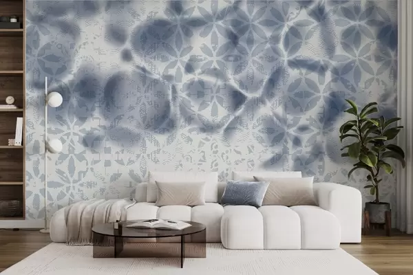 Фотошпалери Абстрактне фактурне мистецтво з блакитним квітковим принтом, вицвілим і розмитим ефектом, що створює м'яку і мрійливу атмосферу w09322
