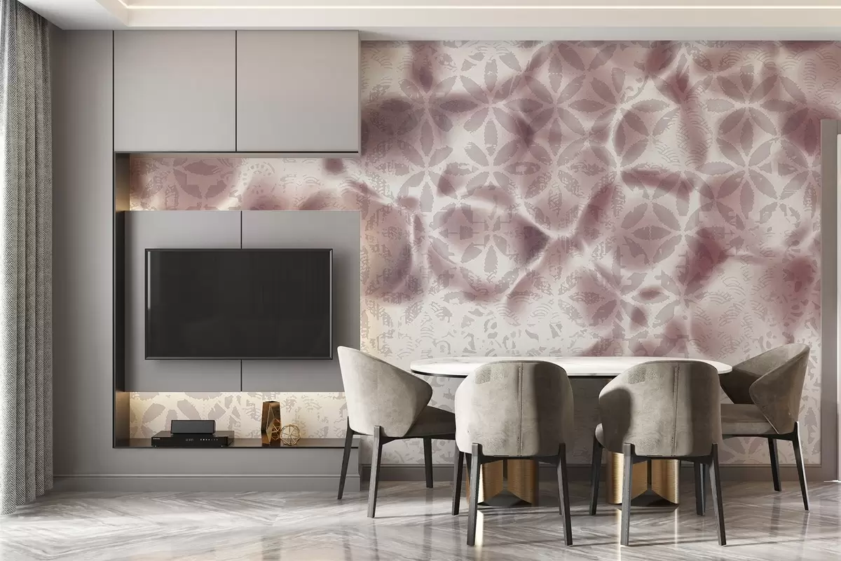 Фотошпалери Абстрактне фактурне мистецтво з квітковим принтом бордо, ефектом вицвітання та розмитості, що створює м'яку та мрійливу атмосферу w09322v1