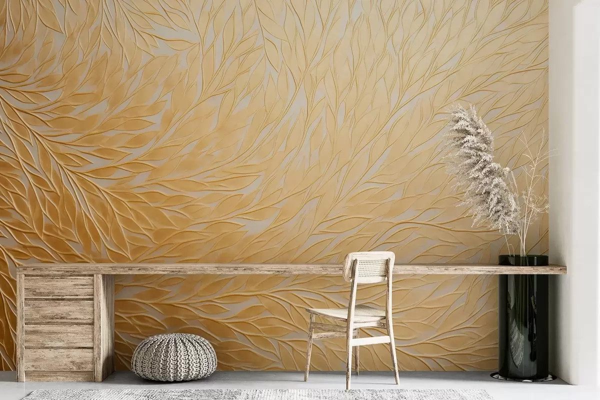 Фотошпалери Рельєфний візерунок листя в теплих медово-жовтих тонах w09325