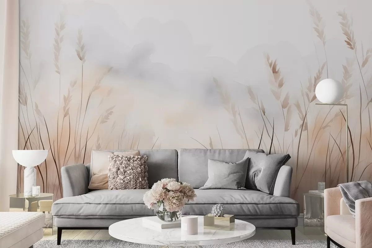Фотошпалери Зернові колоски в тумані в м'яких бежевих і коричневих відтінках w09327