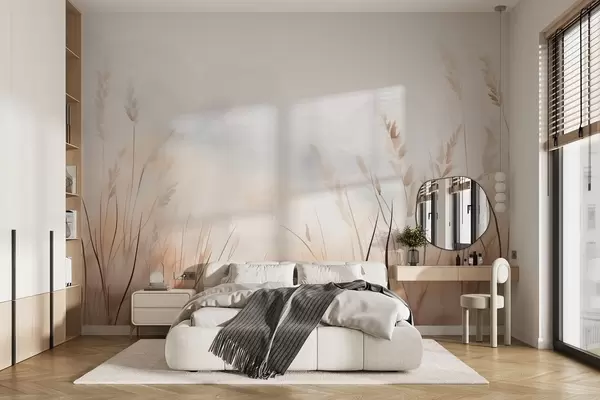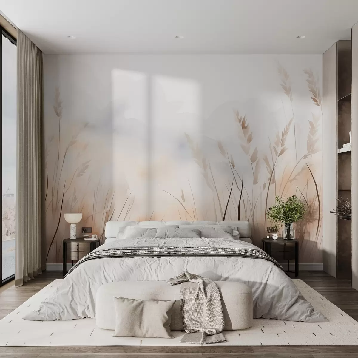 Фотошпалери Зернові колоски в тумані в м'яких бежевих і коричневих відтінках w09327