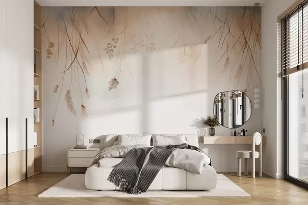 Фотошпалери Пониклі рогози та колосся зернових у тумані м'яких бежевих і коричневих відтінків w09328