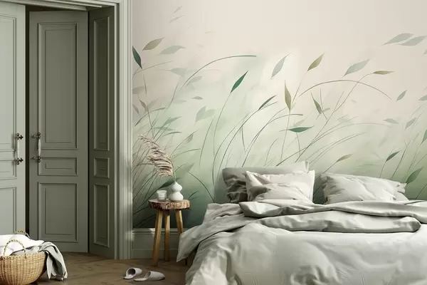 Фотошпалери Зелена трава на вітрі в акварельному стилі w09331