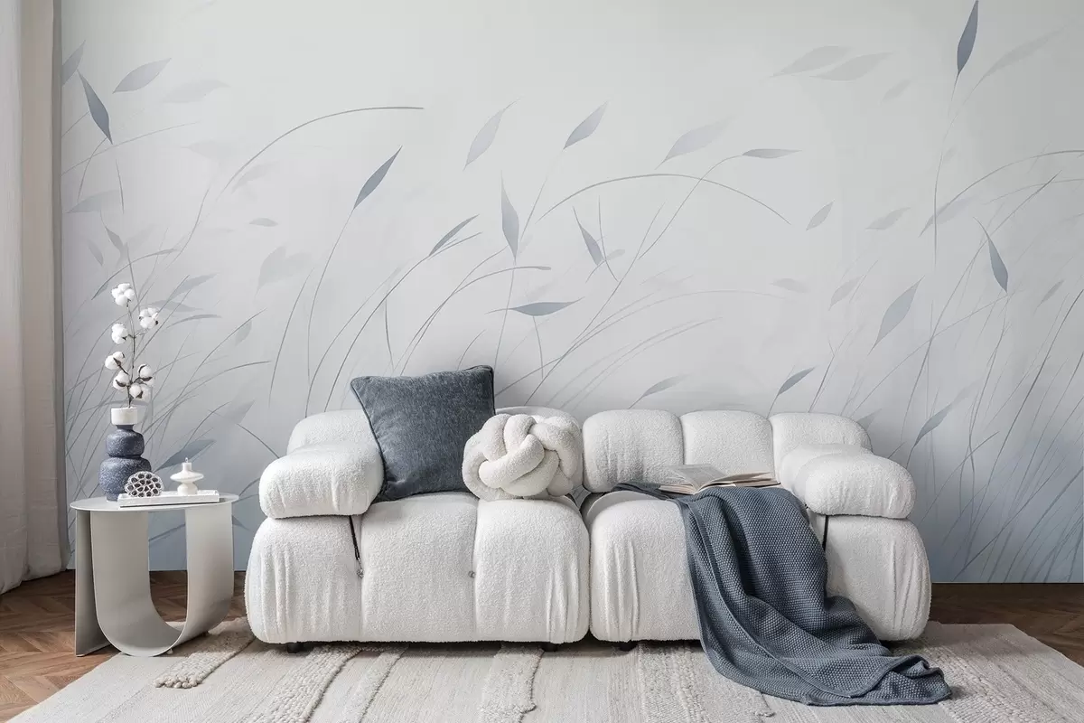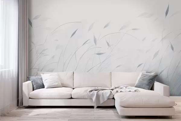 Фотошпалери Трава на вітрі в акварельному стилі в блакитних відтінках w09331v2