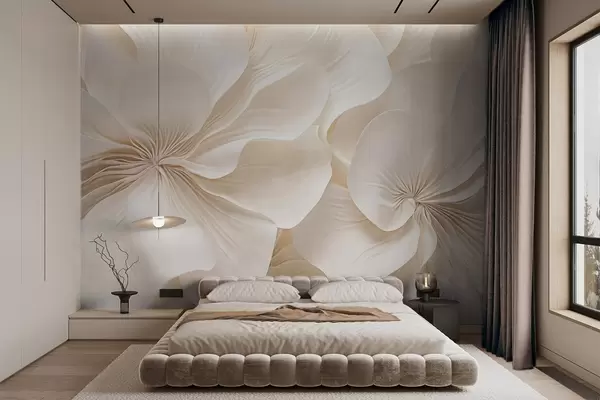 Фотошпалери Крупним планом кремові текстуровані квіти з ніжними пелюстками, що спадають, створюють м'яку, елегантну та фактурну квіткову композицію w09346