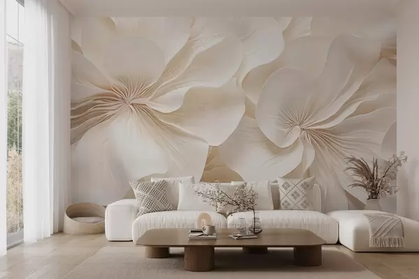 Фотошпалери Крупним планом кремові текстуровані квіти з ніжними пелюстками, що спадають, створюють м'яку, елегантну та фактурну квіткову композицію w09346