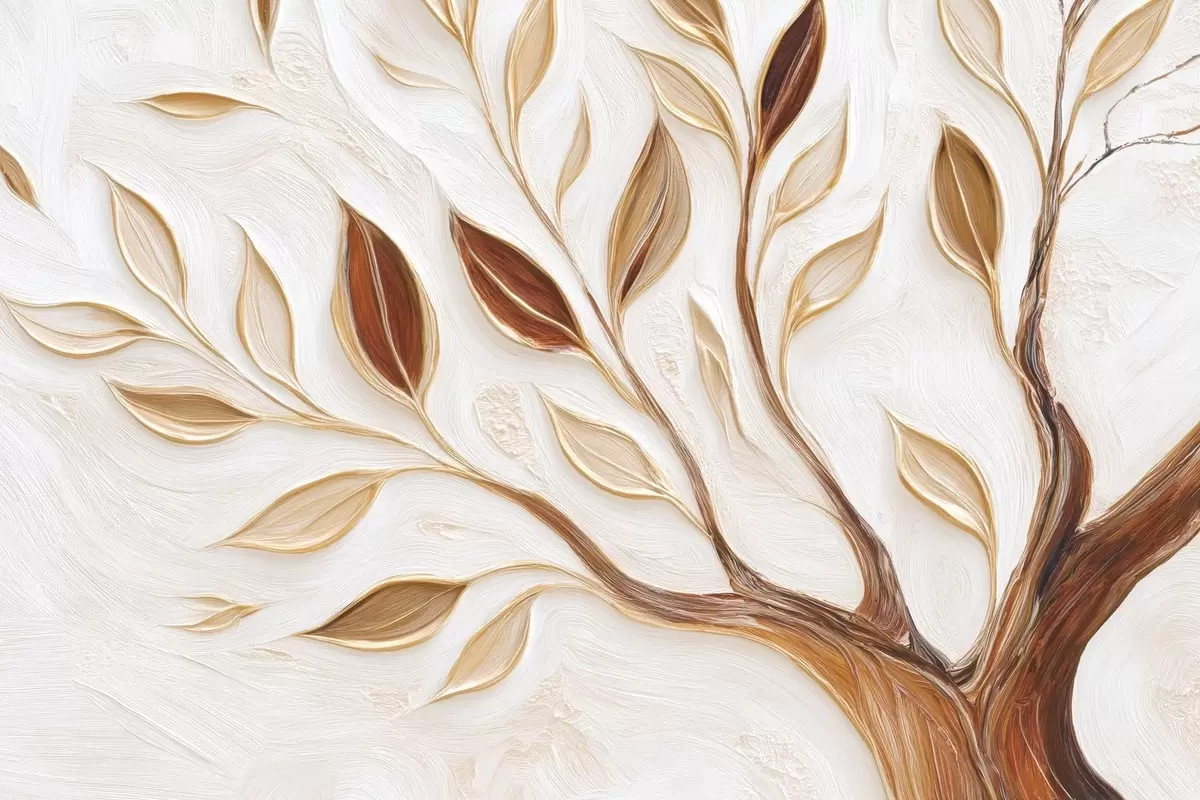 Фотошпалери Декоративне дерево з листям та імітацією фактурного фону w09349