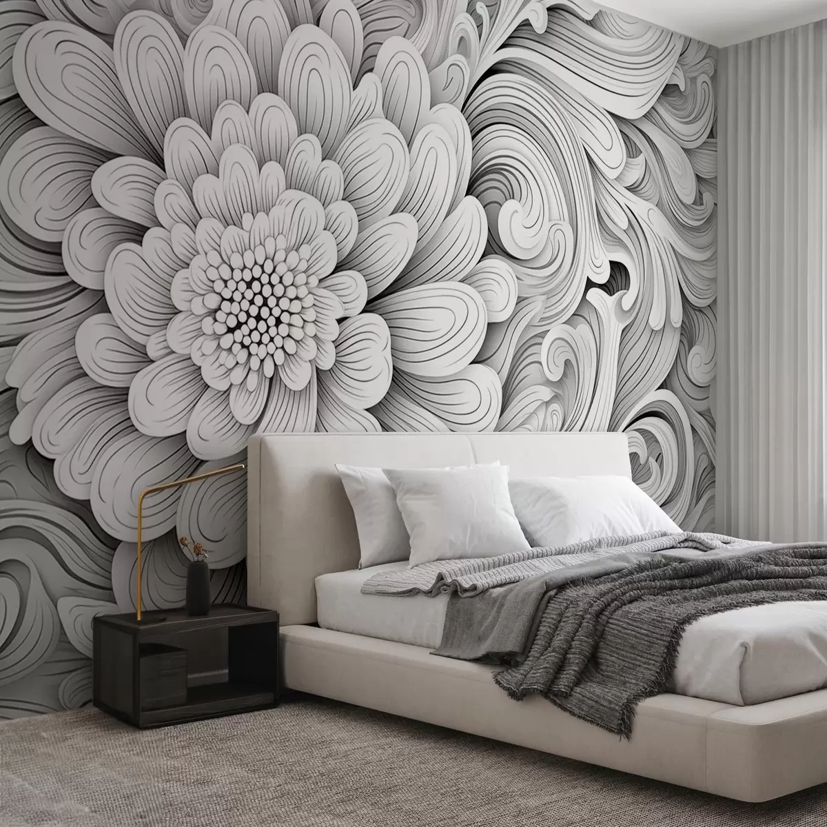 Фотошпалери Декоративний чорно-білий візерунок у вигляді квітки та вихорів w09355