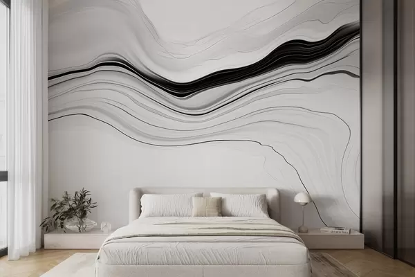 Фотошпалери Чорно-білий візерунок з ефектом мармурових шарів w09358