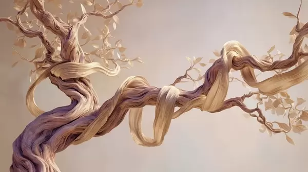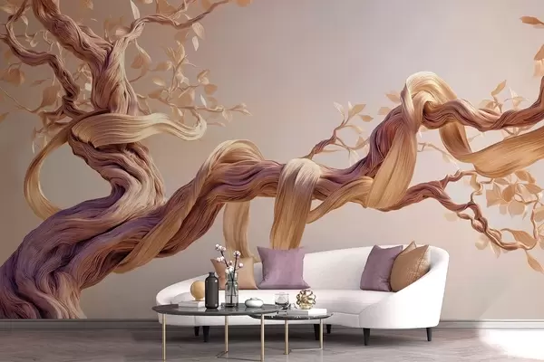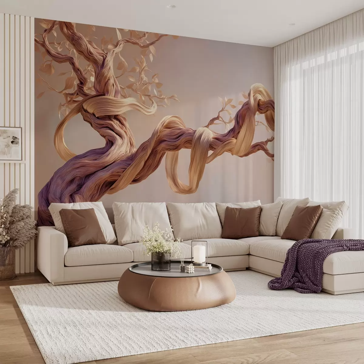 Фотошпалери Скручений стовбур дерева з декоративним листям w09360