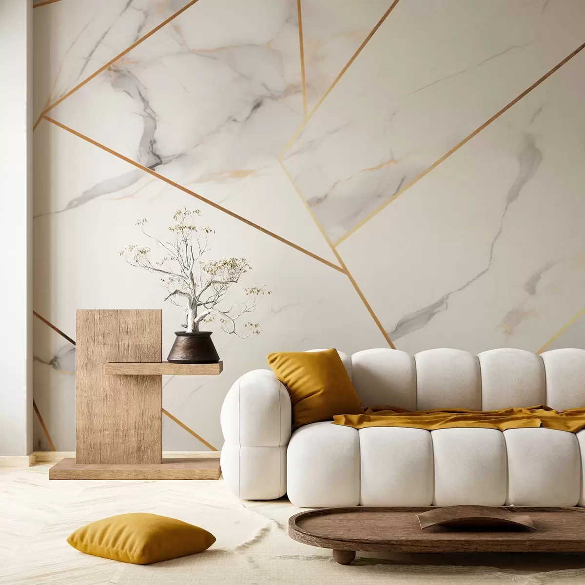 Фотошпалери Імітація мармурової поверхні з жовтим геометричним візерунком w09363