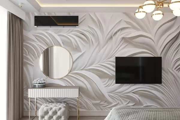 Фотошпалери Абстрактне фактурне біле листя та квіткові елементи, мінімалістична естетика w09378