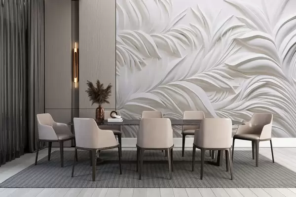 Фотошпалери Абстрактне фактурне біле листя та квіткові елементи, мінімалістична естетика w09378