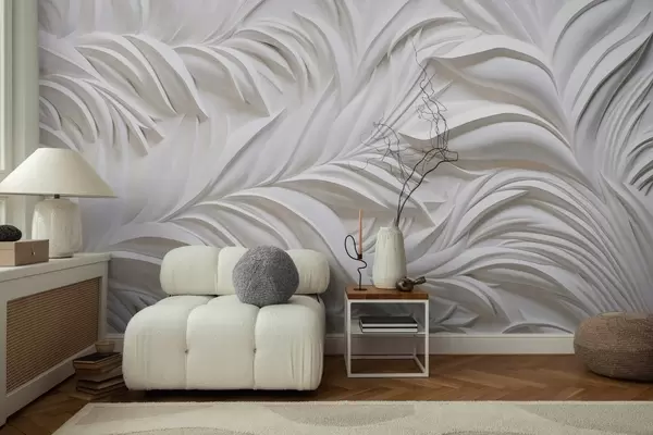 Фотошпалери Абстрактне фактурне біле листя та квіткові елементи, мінімалістична естетика w09378