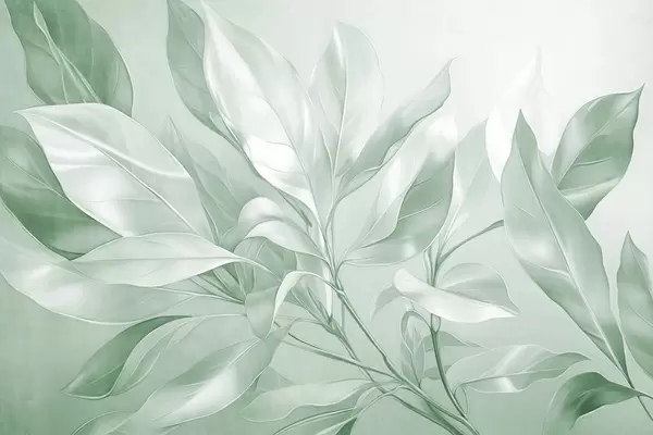Фотошпалери Листя магнолії з білими та зеленими тонами, м'яке освітлення, елегантна композиція, деталізовані прожилки листя, художні мазки w09385v1