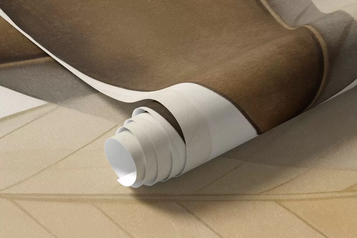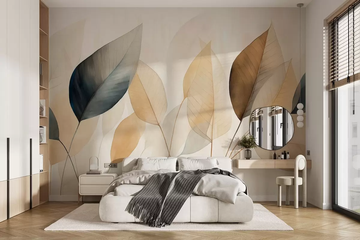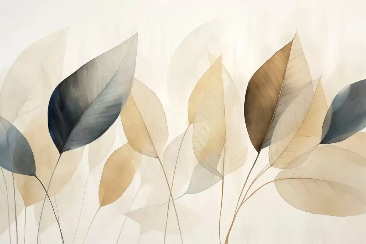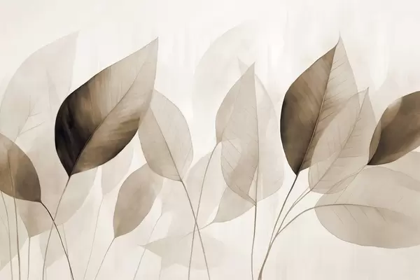 Фотошпалери Текстуроване малювання імітації листя в відтінках коричневого, жовтого та сірого кольорів, з ніжними прожилками та стеблами w09400