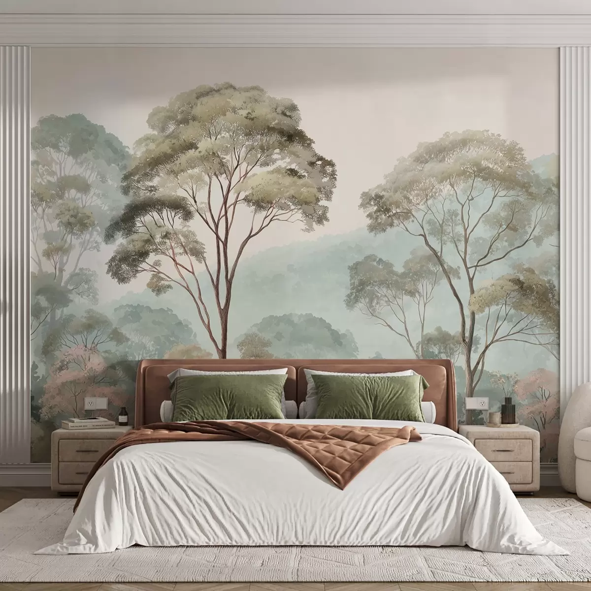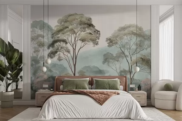 Фотошпалери Туманний ранок у лісі в стилі акварелі w09405