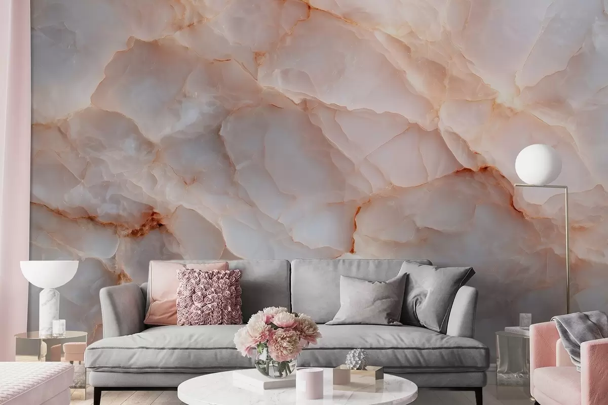 Фотошпалери Розкішна імітація мармуру в бежево-сірих тонах з ефектом мерехтіння w09412