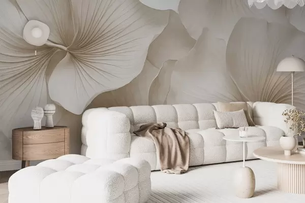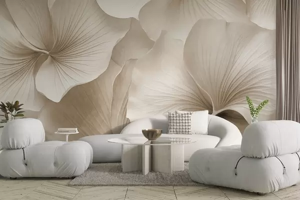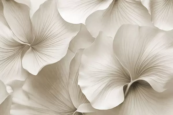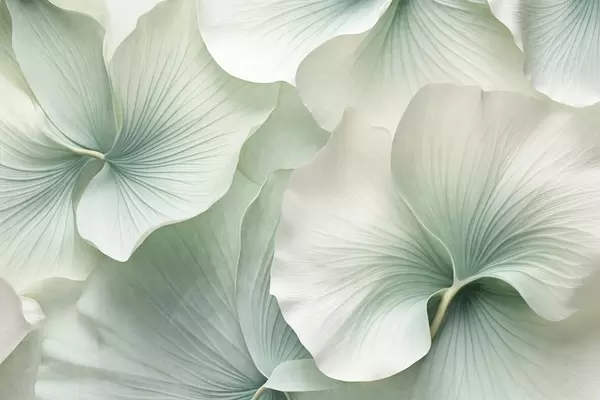 Фотошпалери Біло-бежеві листя гінкго, м'яка текстура, абстрактний квітковий фон, мінімалістичний сучасний стиль w09421v1