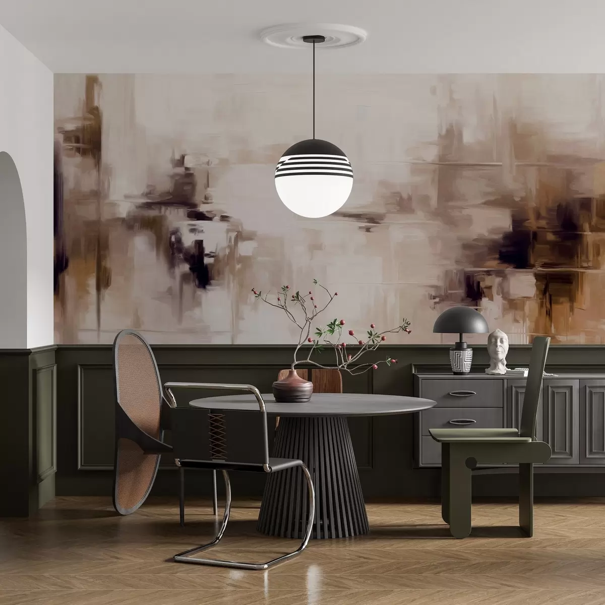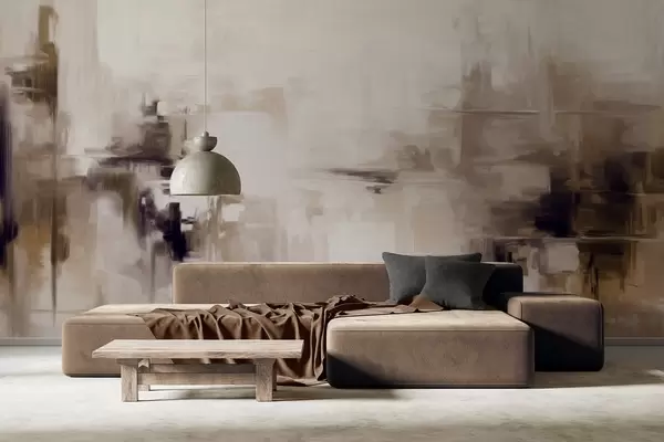 Фотошпалери Абстрактна текстурована імітація пейзажного живопису з коричневими та білими мазками, сучасний стиль w09422v1