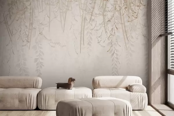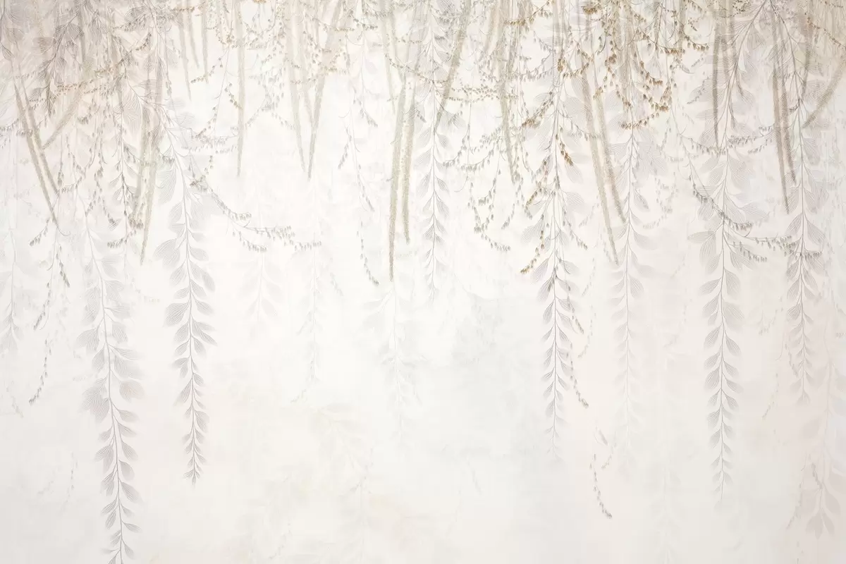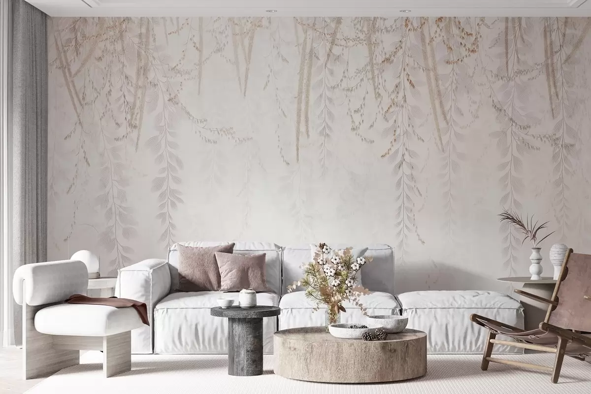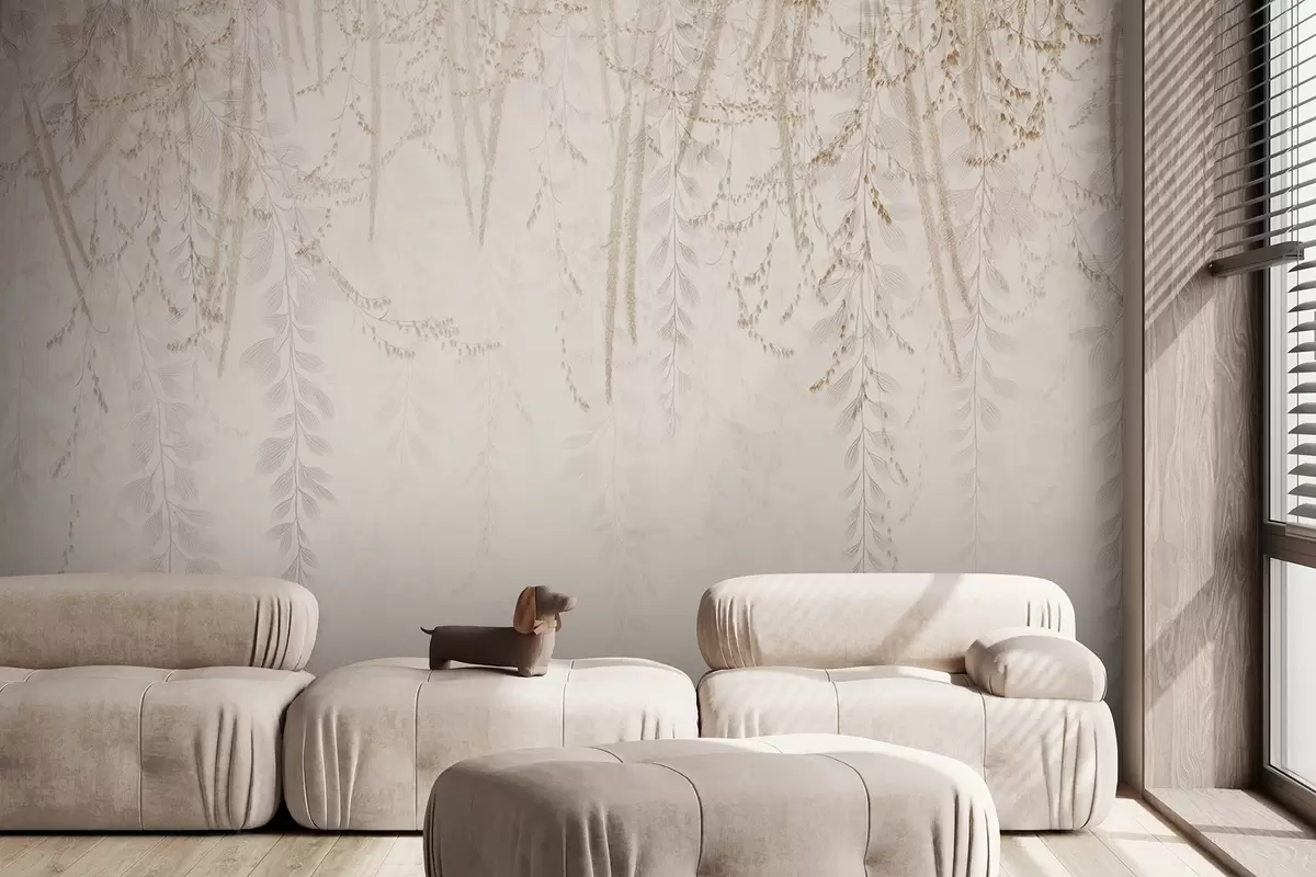 Фотошпалери Легкі підвісні листя і гілки в бежевих тонах w09433