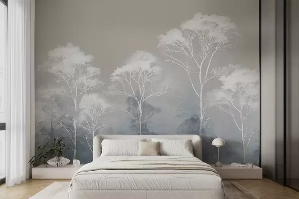 Фотошпалери Мінімалістичні дерева в синьо-сірій палітрі, в тумані w09448