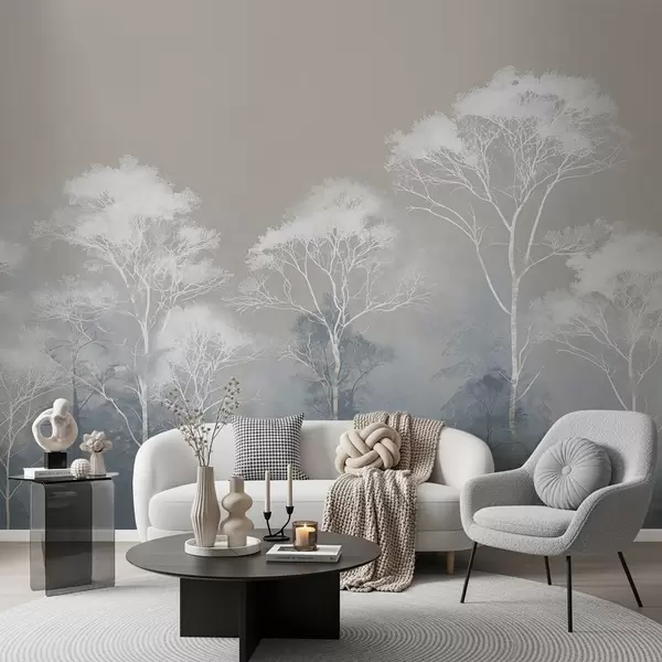 Фотошпалери Мінімалістичні дерева в синьо-сірій палітрі, в тумані w09448